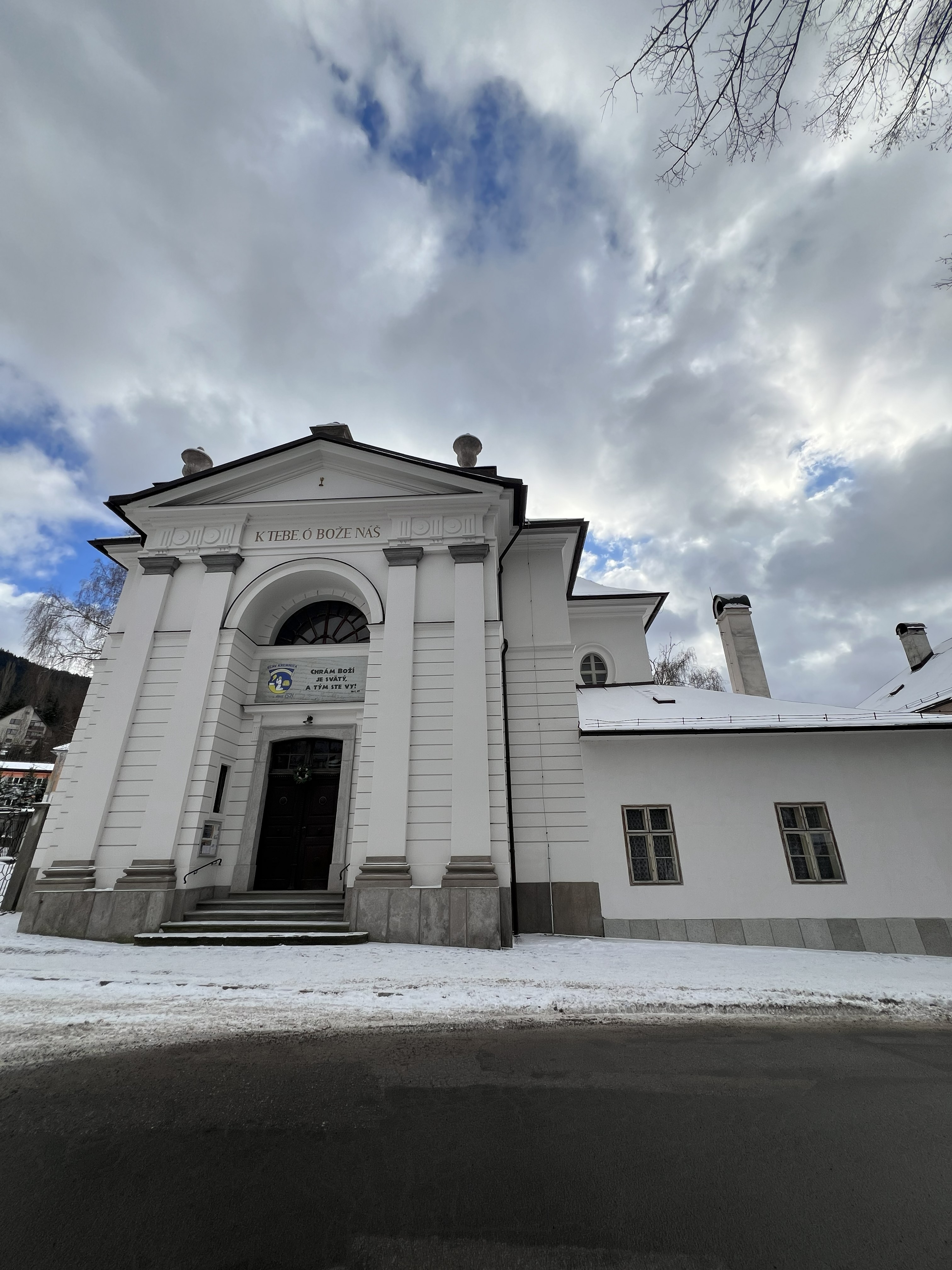 Evanjelický kostol v Kremnici stojí na mieste pôvodnej drevenej modlitebne z roku 1682.