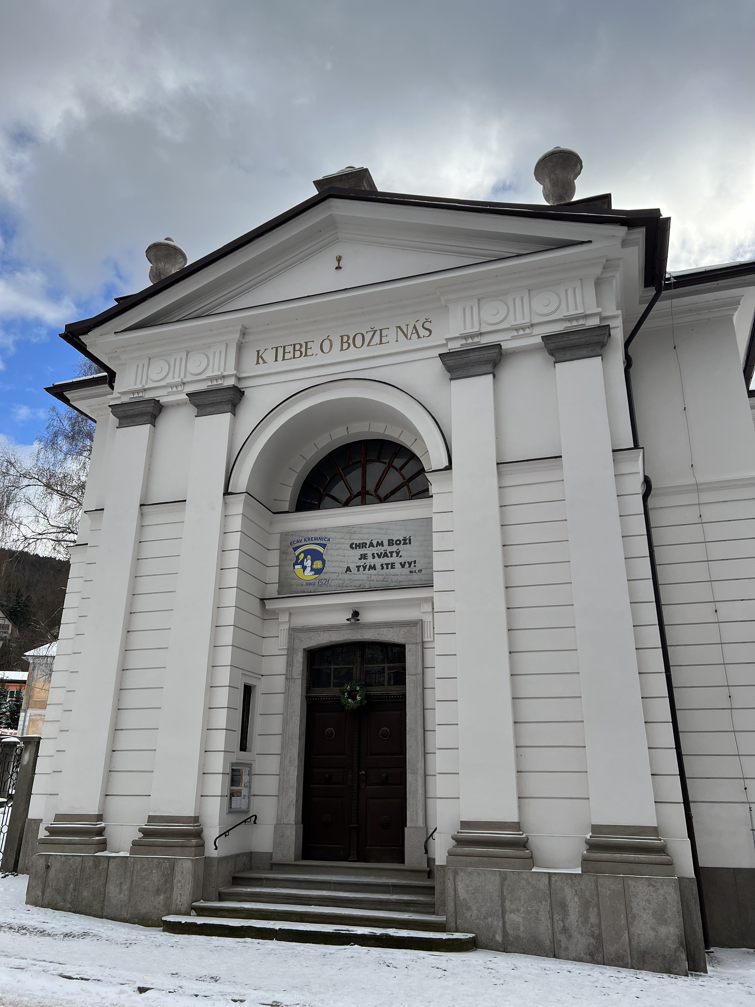 Evanjelický kostol v Kremnici stojí na mieste pôvodnej drevenej modlitebne z roku 1682.