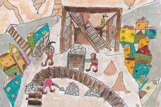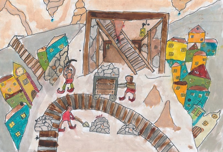 Once upon a time, a poor mining family was living in Banská Bystrica. They worked in a mine on the outskirts of the town. There was neither gold nor silver nor copper in it. The family had a hard life. They barely had anything to eat. The father still believed that one day they would beat the odds. He kept going to the mine with his son, digging strenuously, but to no avail. The father was losing patience. He had lost hope completely. He wanted to leave the mine. As he approached it to say goodbye, he noticed a glimmer of light at the end of the mine. He followed the light, but it took him deeper and deeper into the shaft. He ran after it, but suddenly it stopped moving. When he got closer, nobody was around it. He wondered what magic could be behind it. He looked around and was trying to figure out what has happened. Then he recalled the story that his grandpa used to tell him of a knocker living in this mine. He had always thought it was just a fairy tale for kids. He questioned why it came to his mind particularly at that moment. All of a sudden, a small gentle voice spoke to him from his left side. It commanded him to look to the right. However, the father was too curious and wanted to find out who was talking to him. He started turning his head to the left. At that, the light slowly disappeared, and the mine started shaking. The small voice told him to look to the right, not to the left. As he started turning to the right, the light shone again, and the mine stopped shaking. There was something orange on the right side. The man got closer and discovered a copper vein. He could not believe his eyes. He rubbed them and looked again. It was still there. He thanked the light loudly with tears in his eyes. He kept asking whom he should be thankful for. Then he heard the small voice again. It said that the man should thank his grandfather who had saved the knocker when he had lifted him out of the debris. The knocker had promised to help him and his children or grandchildren if they ever got into trouble, but under the one condition – that no one could ever see him. The father gave thanks once again and started mining the copper ore. The deeper he dug, the more copper he found. He ran home to get his son. Thereafter, they mined new copper reserves every day. Finally, they began to prosper. The family was happy that they could live a better life. They thanked the knocker, who was secretly watching them from behind a rock every single night. The mother baked scones for him and put them on the rock behind the mine every day. However, when the owner of mines noticed the great success of a poor family, he decided to look into it. He crept into the mine at night and even with the faint light of his lantern, he could see a lot of copper everywhere. As he touched it, his lantern went out and the mine started shaking. In the distance, another lantern lit up and the small voice told him to run away before he became angry. The voice wanted him to confess that he was about to steal it from the miner. Otherwise, he would never find any copper in his mines again. However, the rich miner did not admit to his evil intentions. Within three days, all of his mines quaked. And when he dug a new one, it fell down as well. Nevertheless, he stood his ground, and as a result, became poorer every day. The knocker disliked this behaviour. He got really angry at people, considering all of them to have the same wicked natures. He took back everything he had given them before. Since then, the copper vein can not be found in Banská Bystrica.