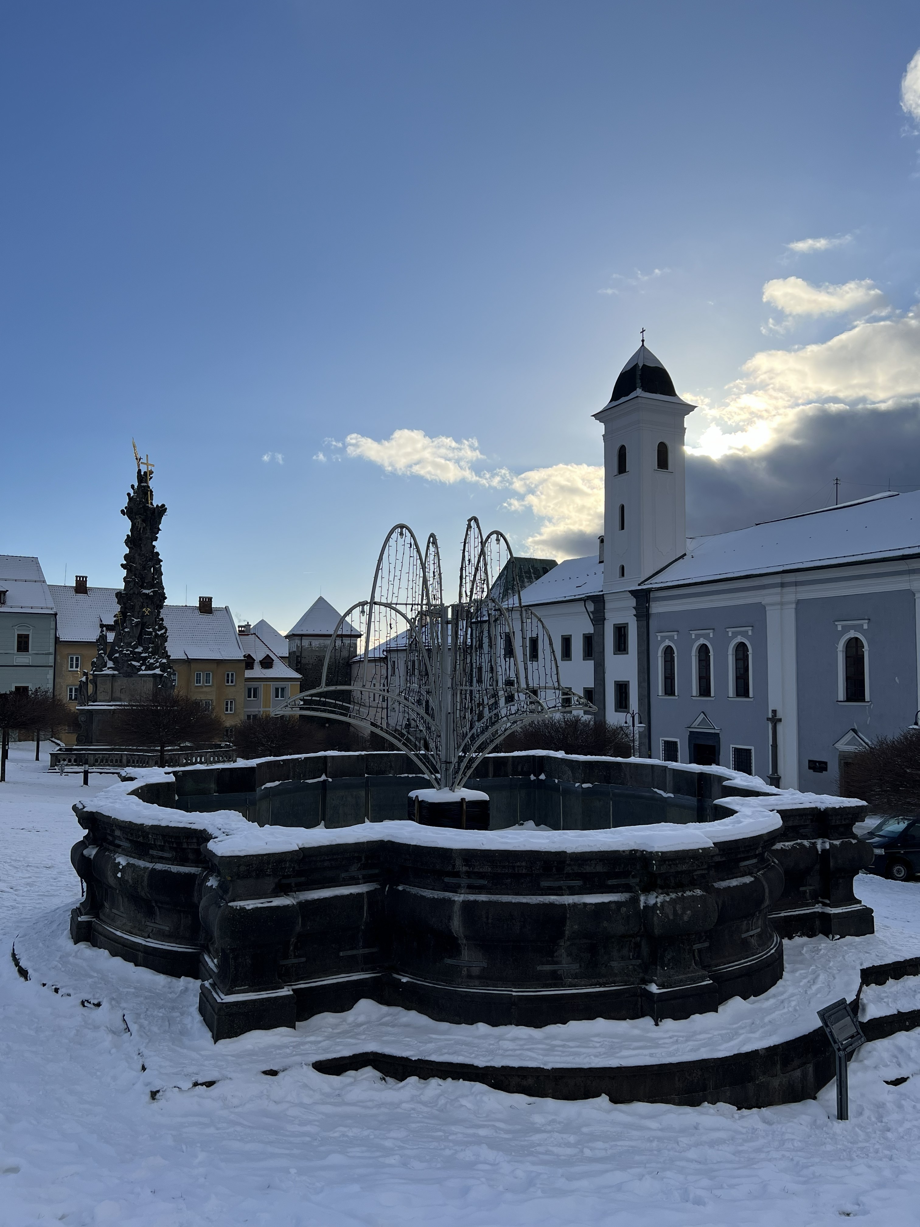 The fountain dates back to the 18th century and represents a valuable example of Baroque urban design and sculptural work in a regional context. It is located in the northern part of the square and was originally complemented by a statue of Neptune, the god of water, which was later removed and is planned to be restored. Owing to its location among other landmarks — such as the plague column, burgher houses and the mint — the fountain is a popular spot for walks, photography and relaxation while exploring the mining and minting history of Kremnica. The fountain is listed as a national cultural monument and is easily accessible in the town centre, which as a whole forms an important heritage conservation area.
